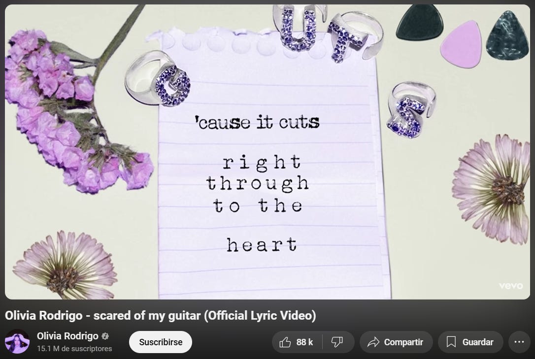En su segundo disco, GUTS, Olivia Rodrigo canta en “scared of my guitar” cómo no puede acercarse a su guitarra porque aunque dice que está bien, probablemente si comienza a cantar va a tener que enfrentarse a la realidad de que hay cosas que duelen. Tal vez por esa razón no puedo volver a escribir como escribía, porque para hacerlo tendría que volver a mostrar las partes “menos aesthetic” de mi corazón, en una sociedad -y una autoimagen- que ha avanzado hacia la higienización de todo, hacia la altura moral de tener resuelta la vida y las emociones.